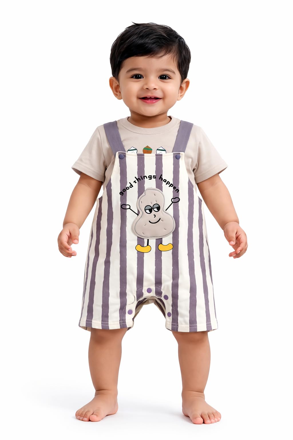 Baby Boy & Girl Cotton Dungaree Romper Set with T-Shirt | Cartoon Printed Suspender Shorts Outfit | Soft Summer Toddler Clothing Set