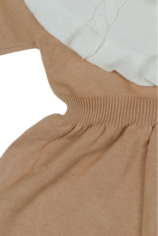 Beige and White Knitted Winter Dress for Girls