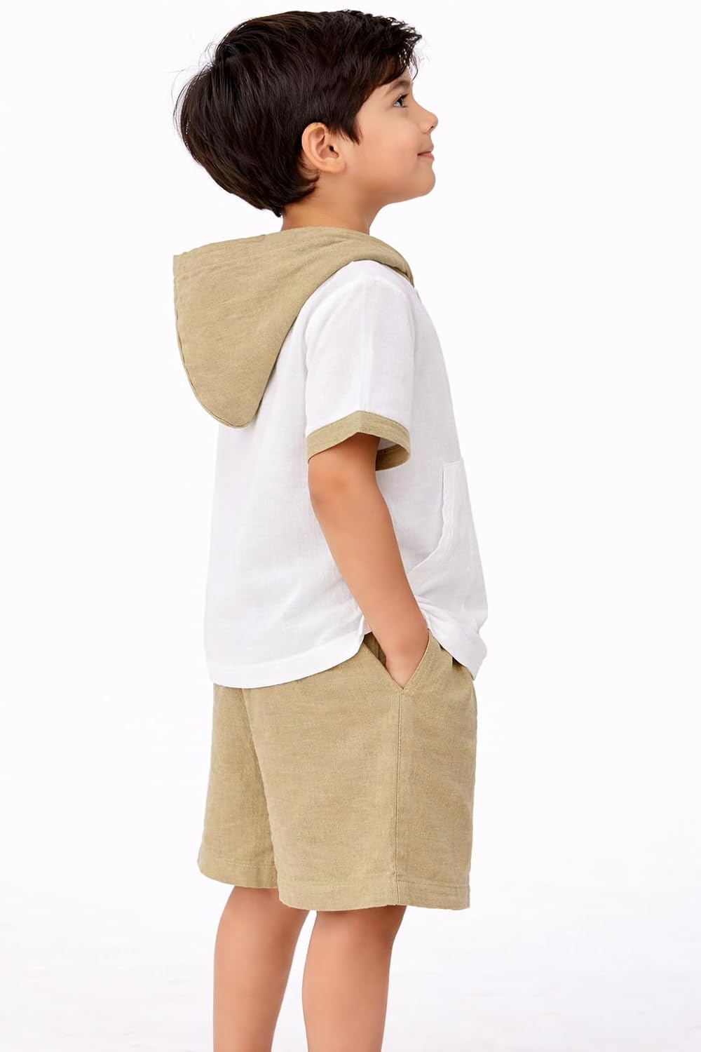 - STYLISH 2-PIECE SET: Boys' coordinated outfit featuring a hooded T-shirt and matching shorts for a smart casual look.