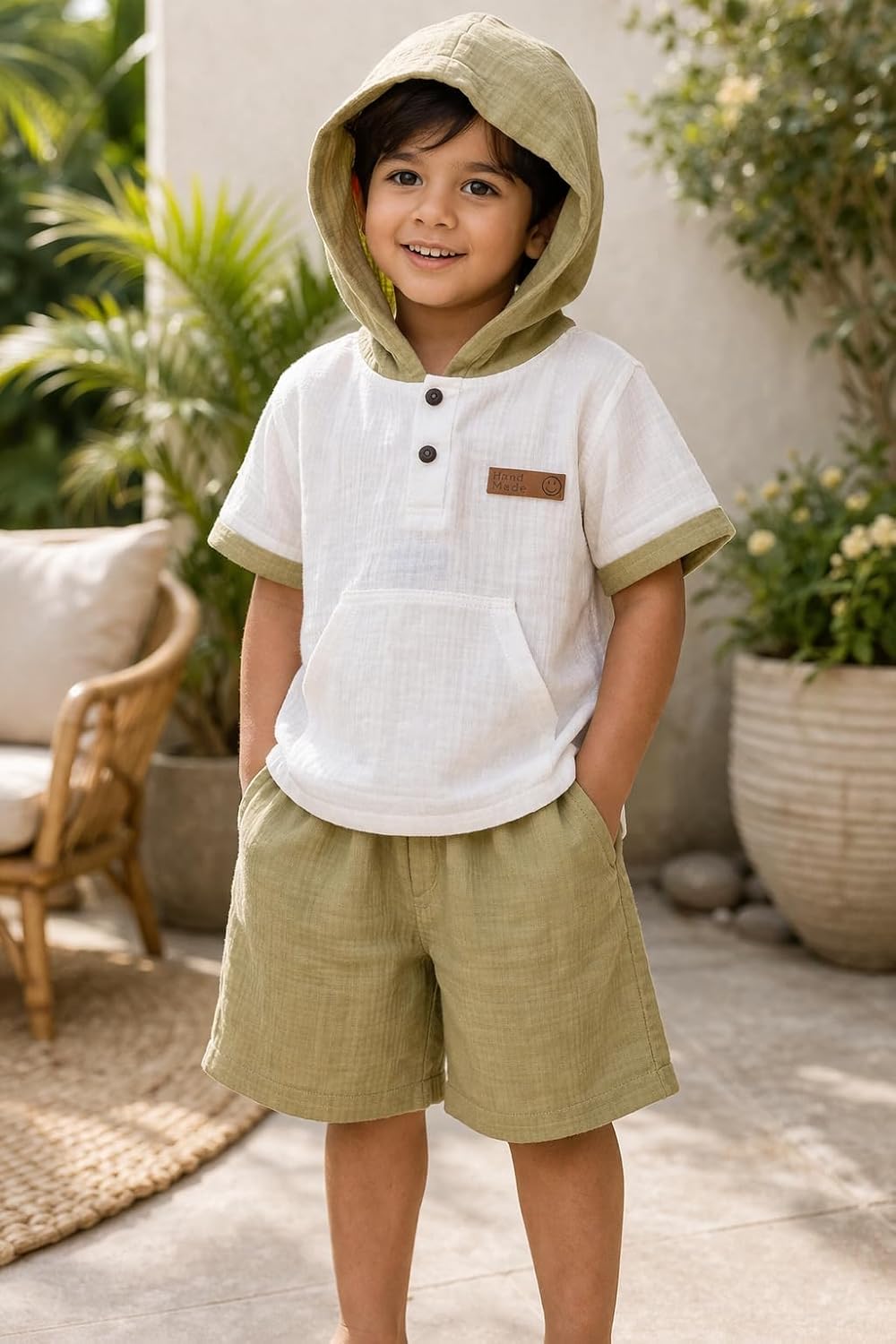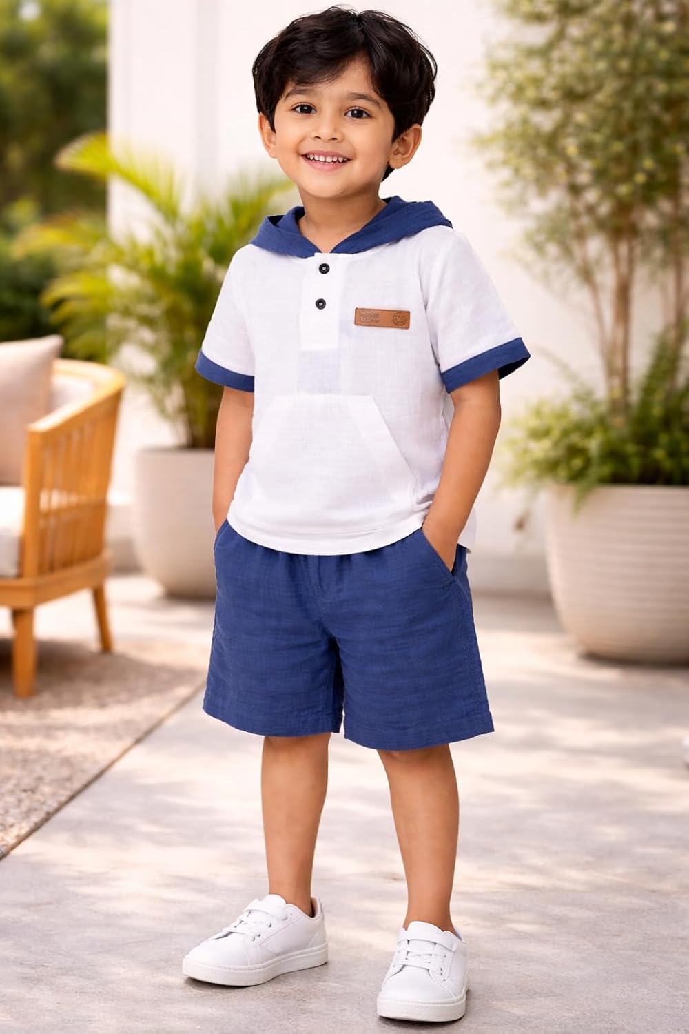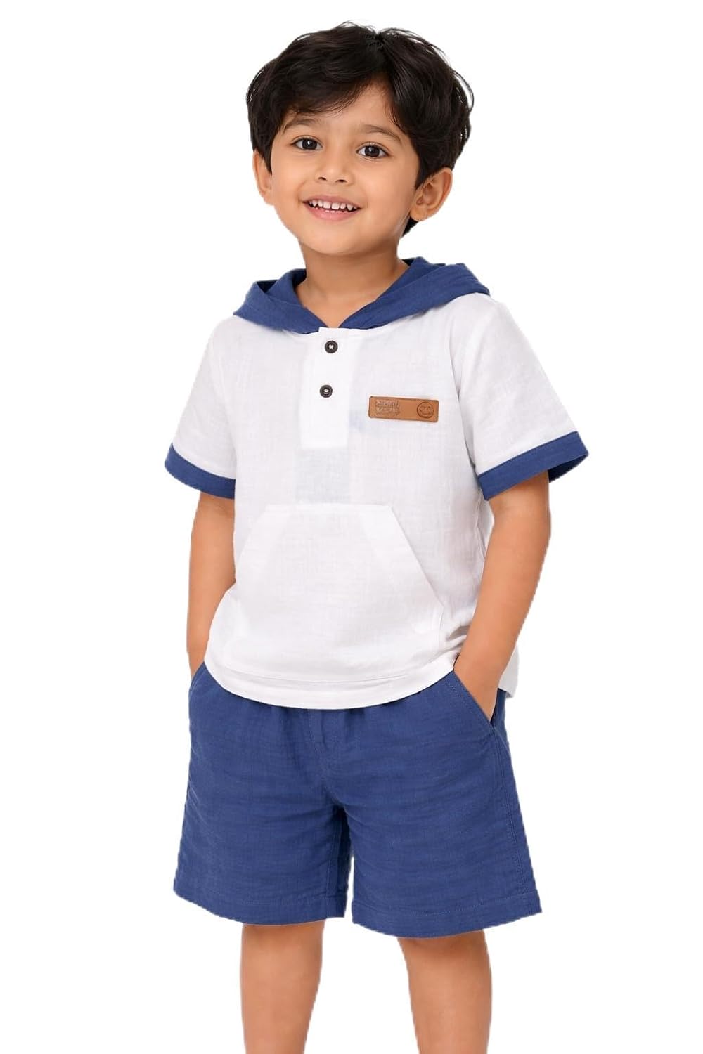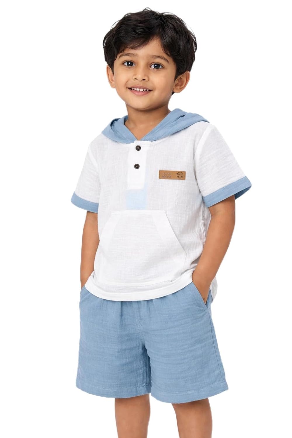 Boys Cotton Hooded T-Shirt and Shorts Set | Summer Casual Outfit | Soft Breathable Clothing Set for Boys