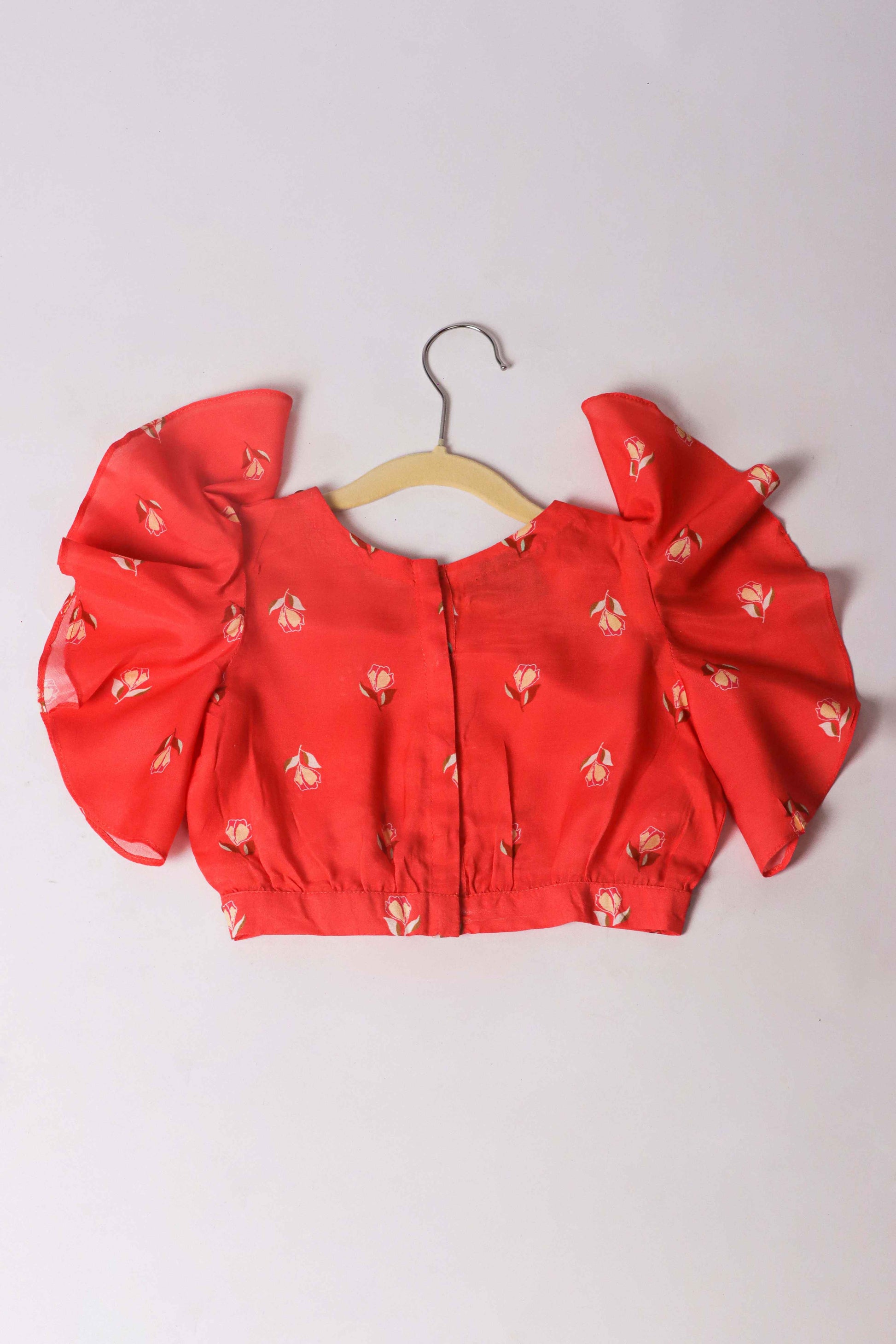 🌸 Vibrant floral palazzo and blouse set in coral hues, perfect for weddings and family gatherings. Features: