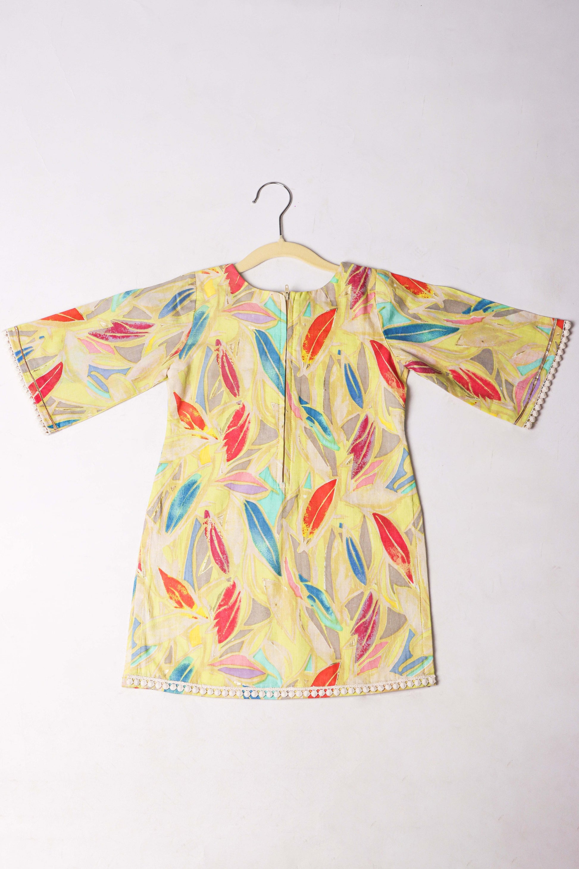 Make your little girl stand out in this stunning yellow ethnic set! Our designer Kurti-Dhoti combo features: