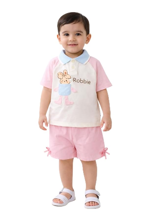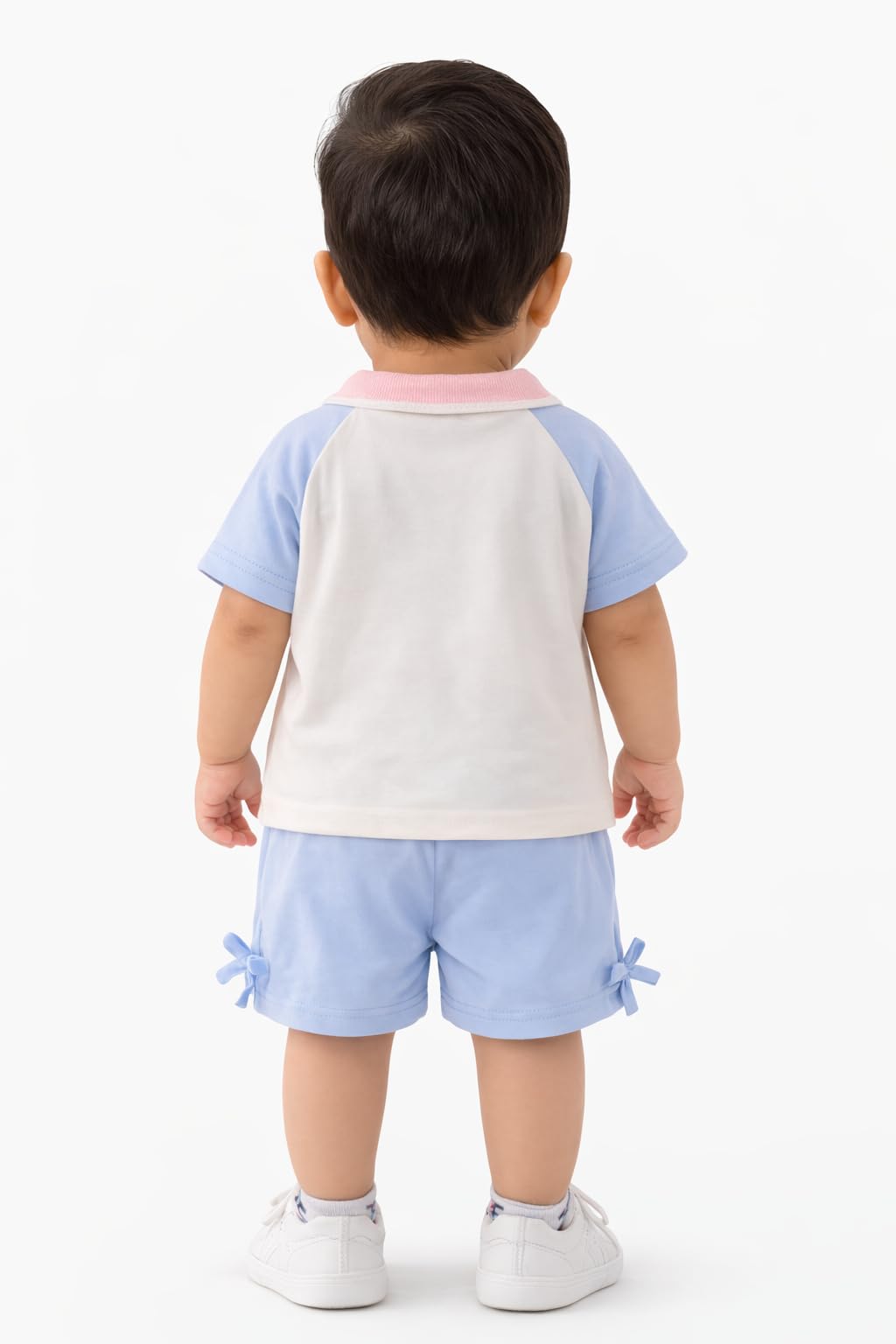 Baby Boys & Girls Cotton Summer Clothing Set | Cute Rabbit Applique Polo T-Shirt & Shorts Outfit
