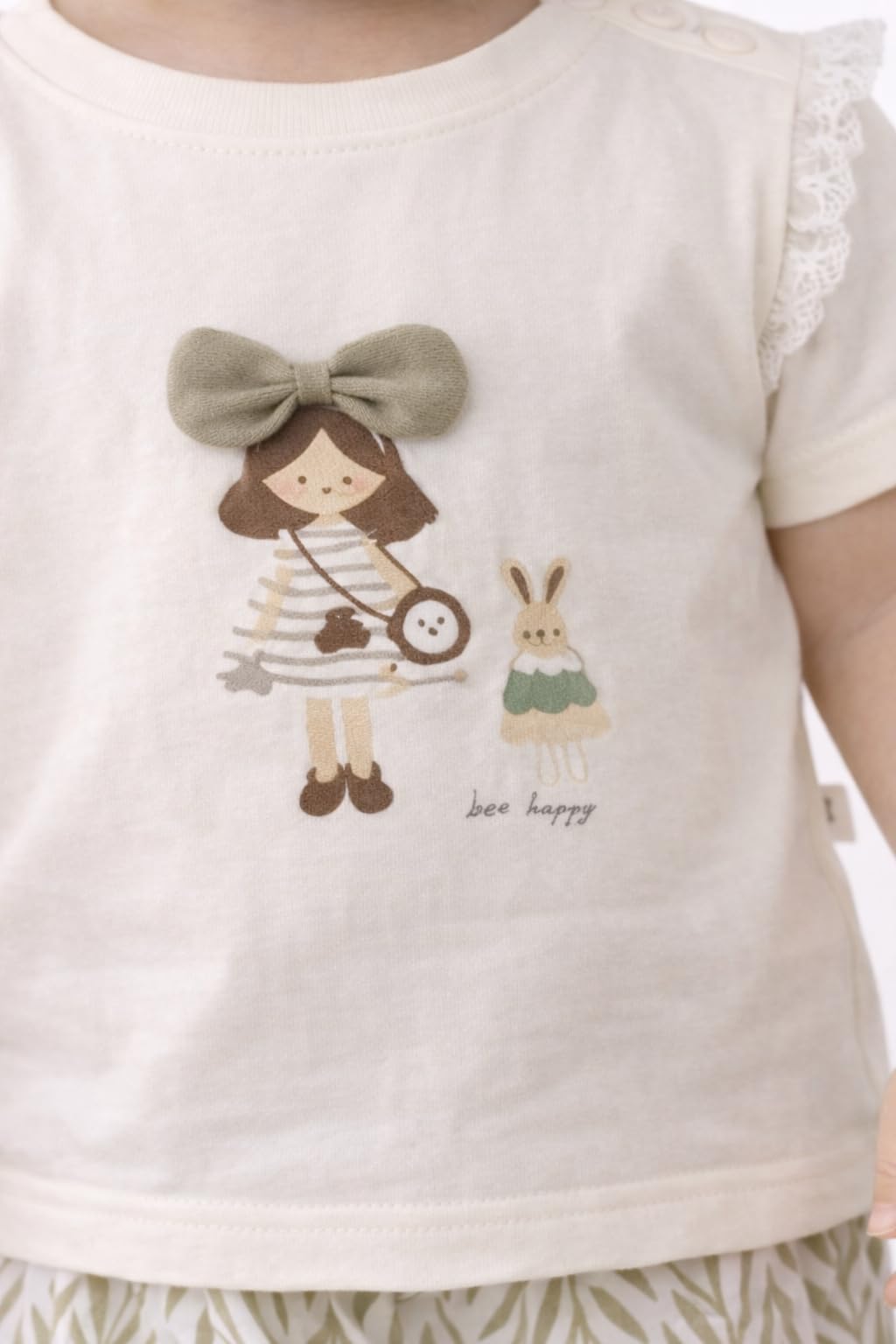- Charming Design Details: Features delicate lace trim on sleeves, 3D bow appliqué on the front, and 'bee happy' slogan with whimsical character illustrations for added charm