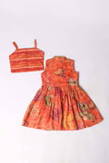 Warm orange hues with a flared lehenga, jacket and cute top, inspired by the beauty of sunsets. Features: