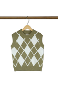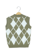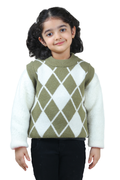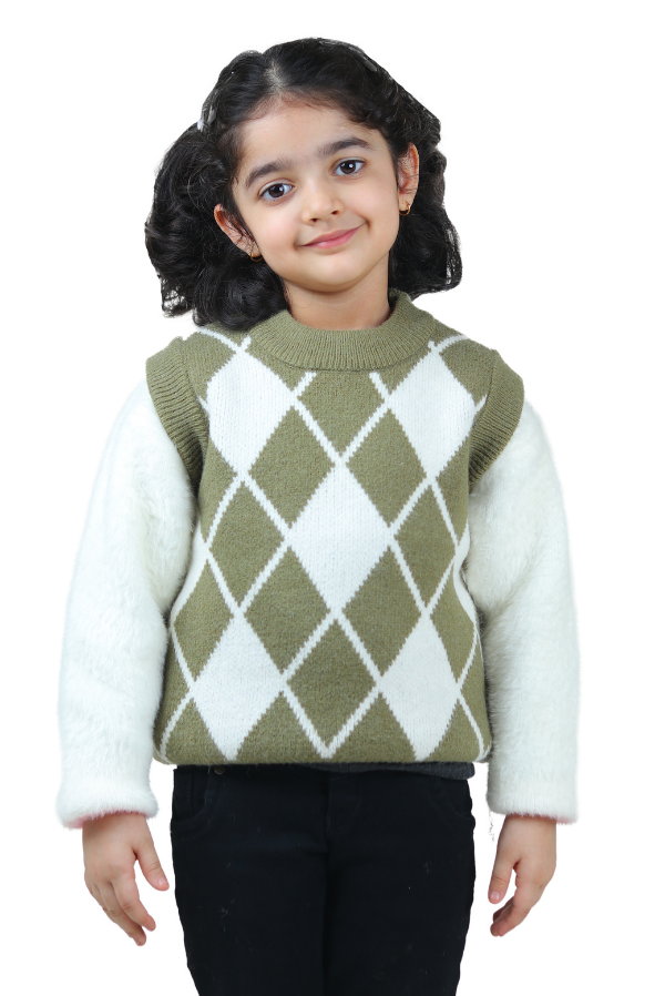 Introduce timeless style to your child's wardrobe with this unisex classic checks half-sleeve sweater. This sweater features a traditional checkered pattern in olive green and white, offering a versatile look that suits any occasion. The half-sleeve design provides a comfortable fit, perfect for layering over a long-sleeve sweater or wearing on its own in colder weather.