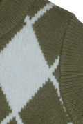 Unisex Olive Green Classic Checks Half-Sleeve Sweater