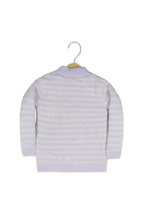 Light Purple Striped Sweater with Rabbit Embroidery for Babies