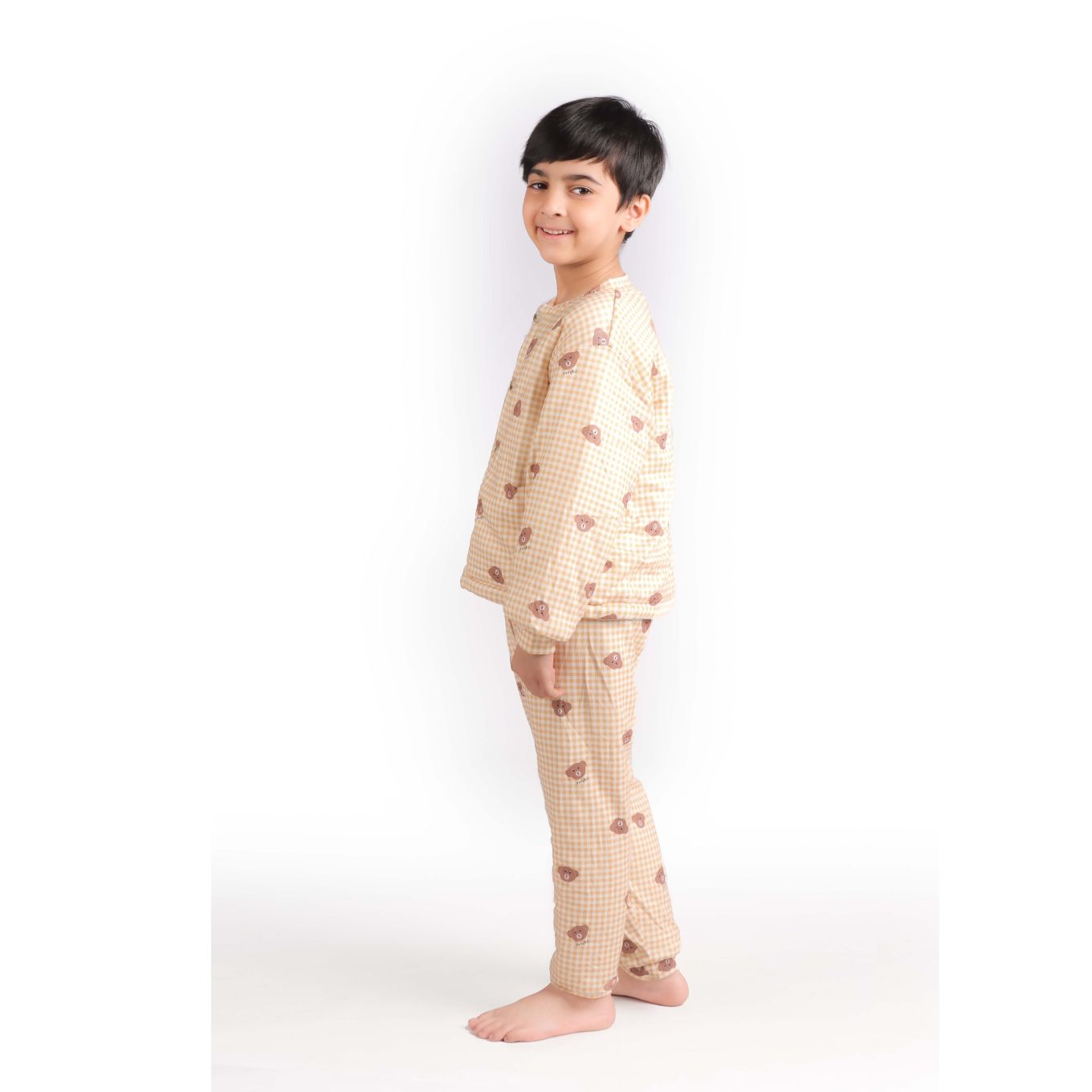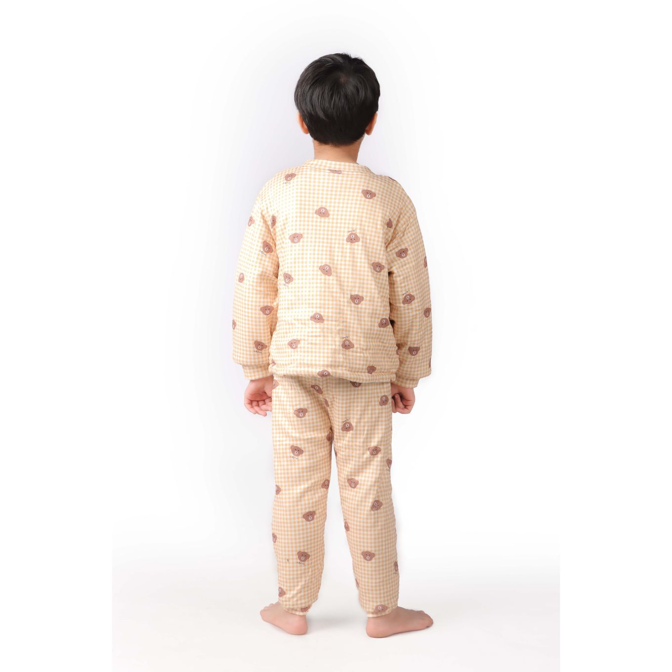 Keep your little one snug and warm with this adorable quilted winter set featuring a playful teddy bear print. The soft fabric and cozy design are perfect for chilly days.